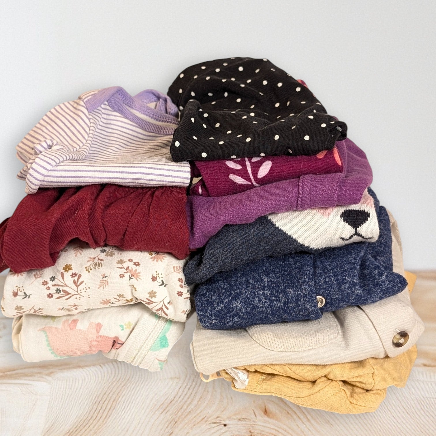 Bundles include 8–12 pieces of second-hand kid's clothing, sizes 0–6 years from a variety of brands. Curated for everyday use such as pyj's, onesies, tops, bottoms, dresses, and accessories, Nouluv pieces are always flawless, cute… and ready to wear!